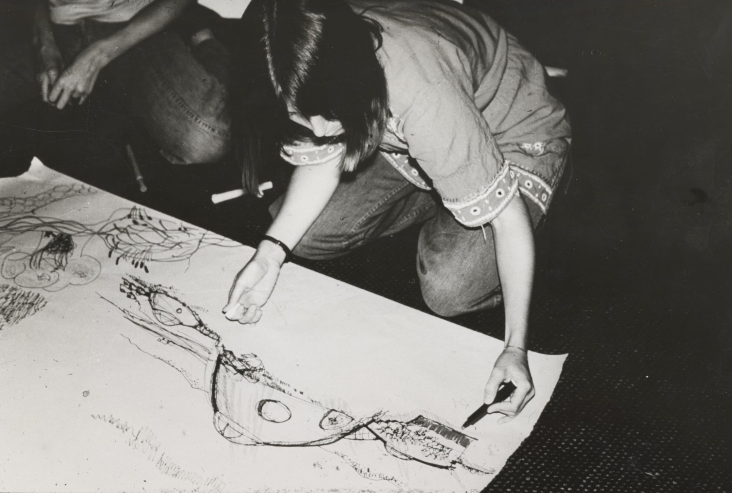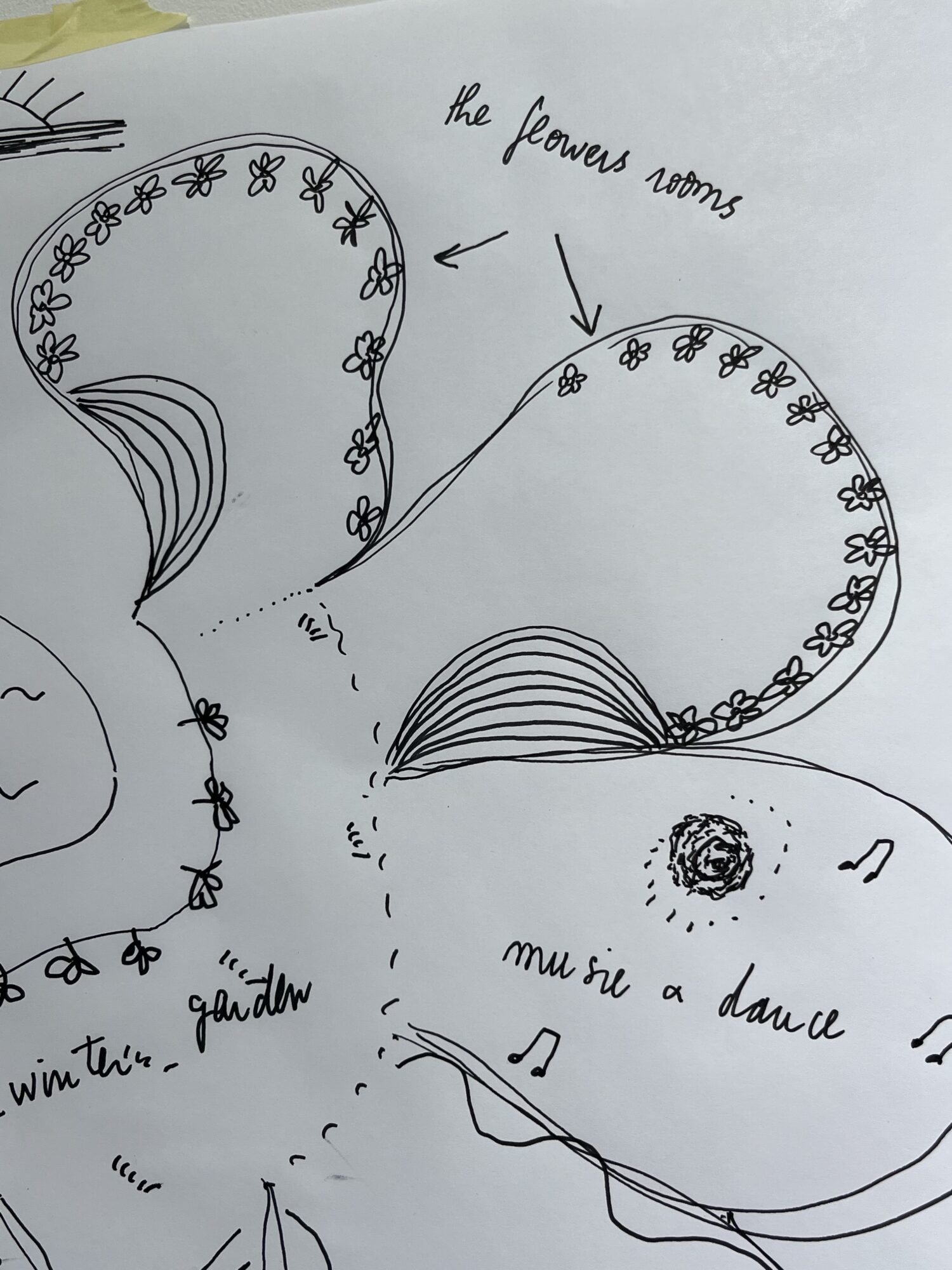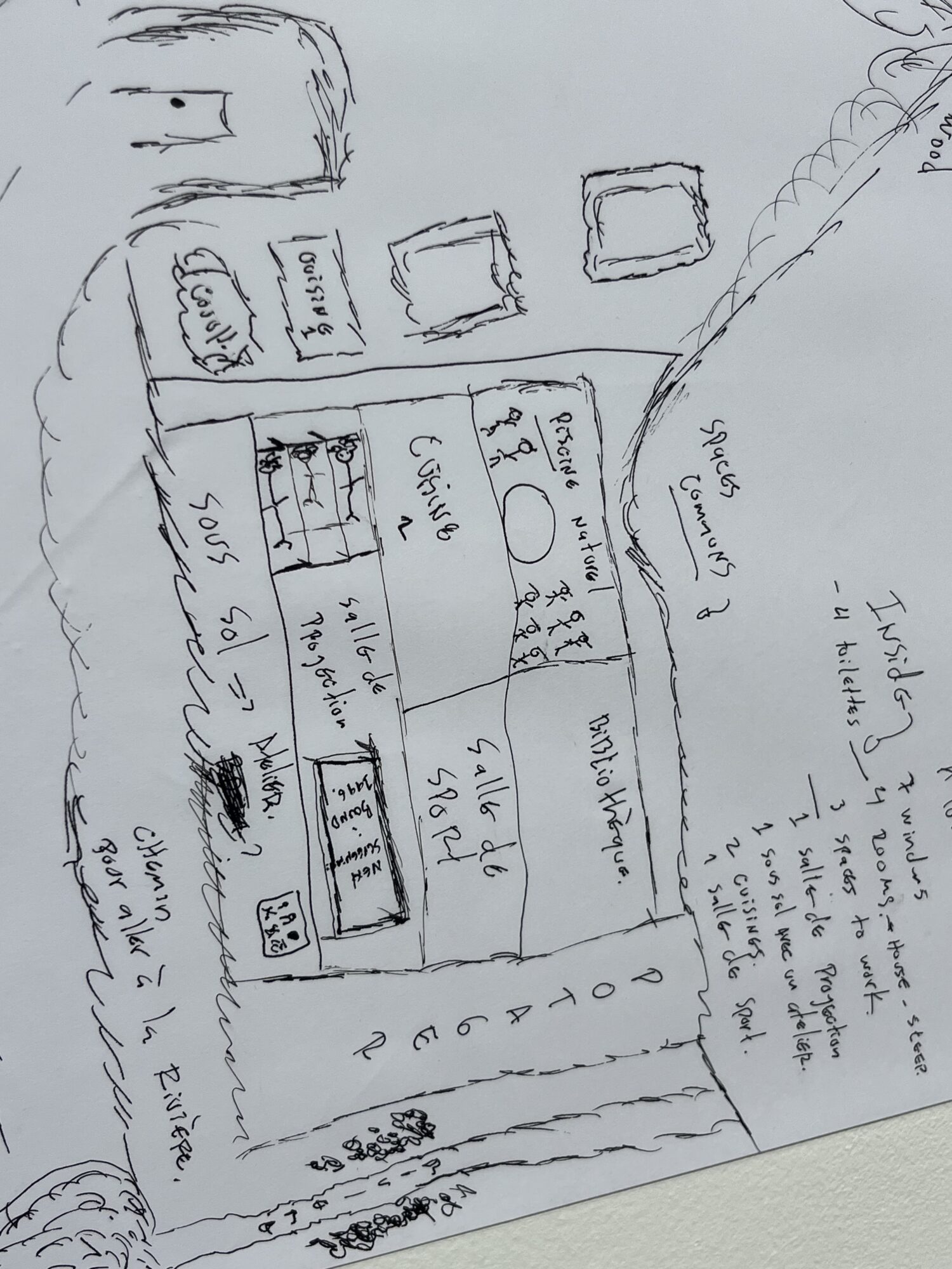 Drawing from the Design Your Fantasy Environment Workshops initiated by Phyllis Birkby and Leslie Kanes Weisman — American feminist and lesbian architects and activists who, in the 1970s, invited women to dream up and draw their ideal spaces, far removed from the norms of the heterosexual household and that of patritecture. A communal room for love-making, another one designed for screaming, pools to drown one’s sorrow or domes filled with “hot fudge on demand” — these modular spaces would unfold following affective,