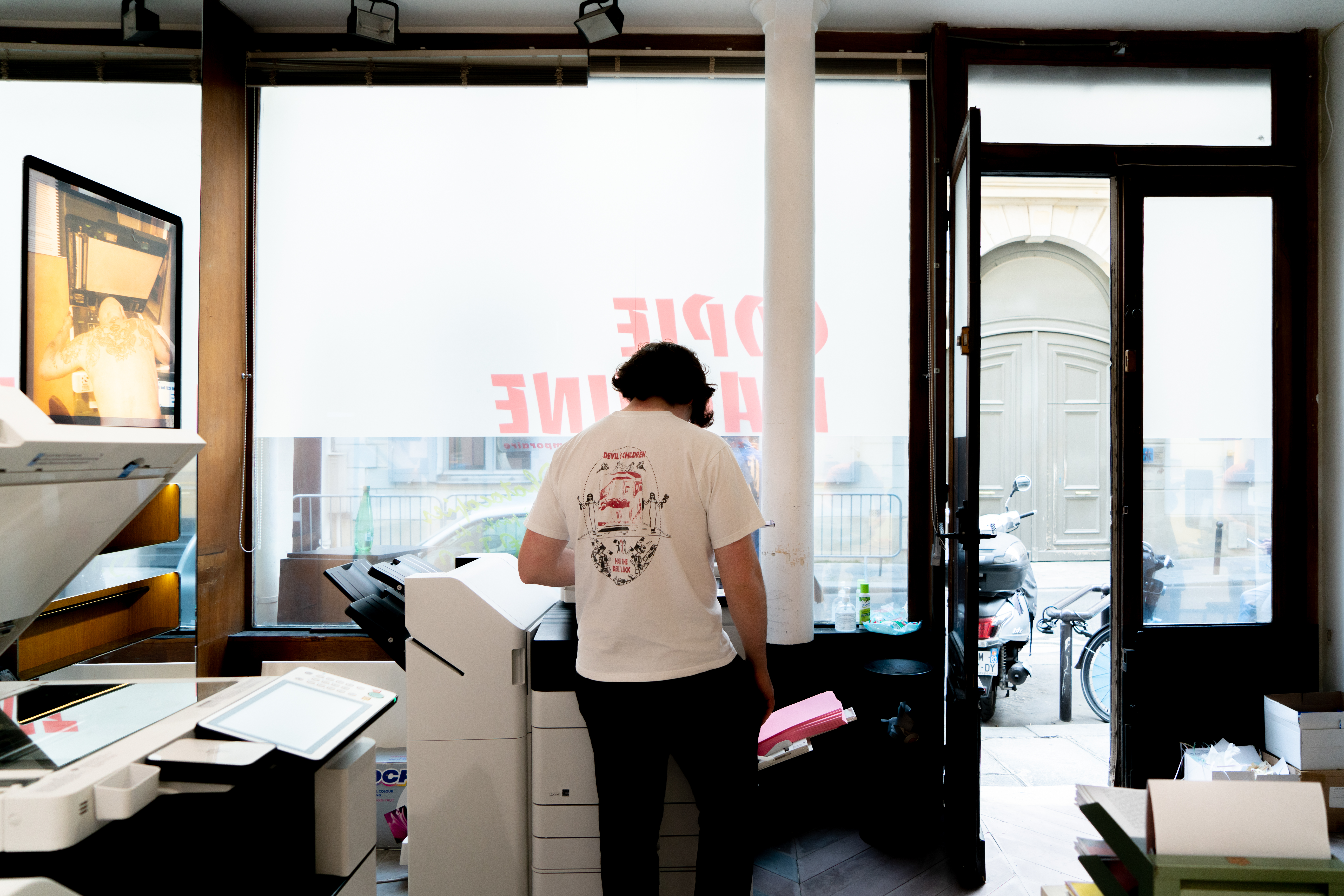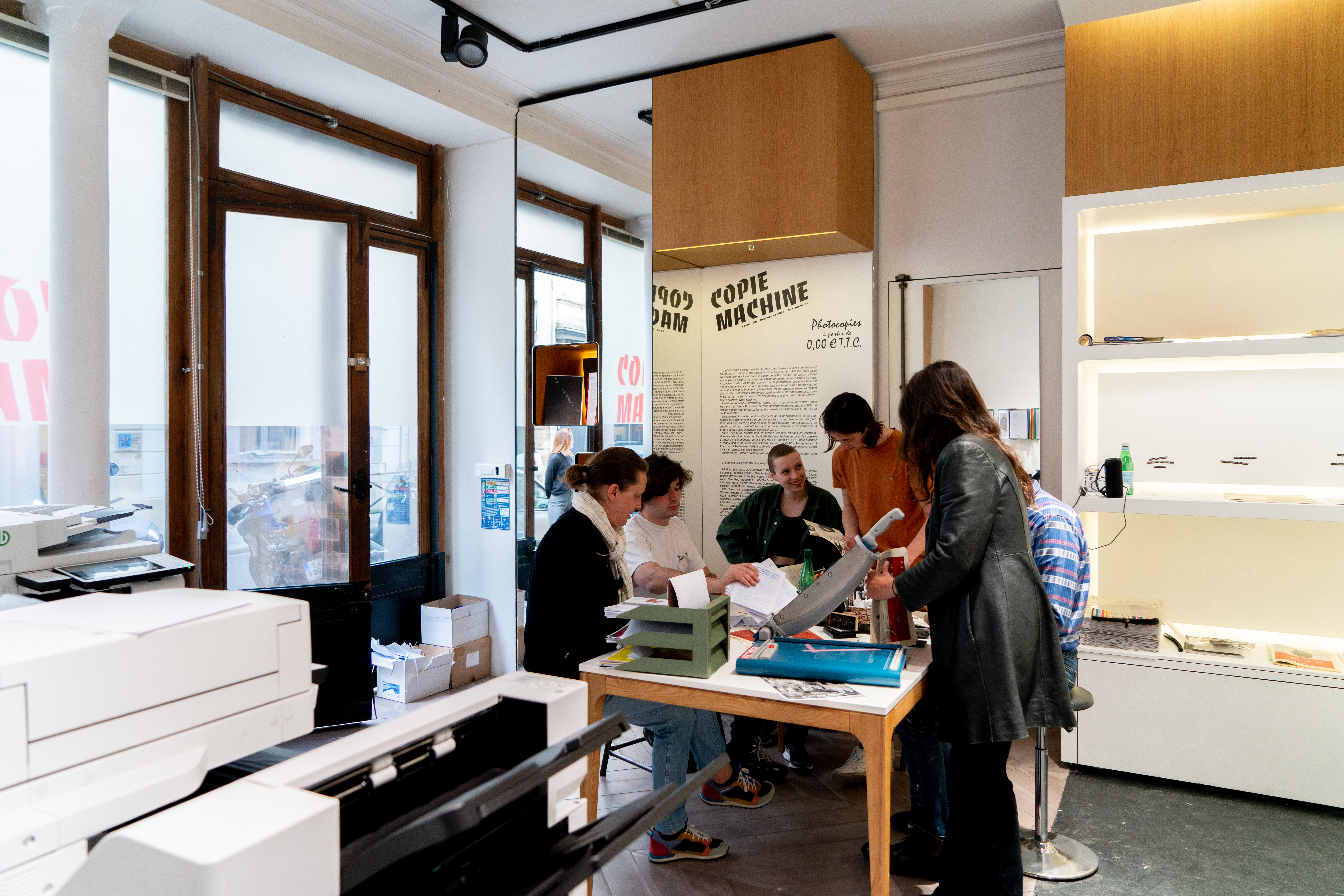 Copie Machine is a duo formed by zine experts Laura Morsch-Kihn & antoine Lefebvre editions. The Shmorévaz Temporary Photocopy Zone was conceived in collaboration with Salomé Burstein.