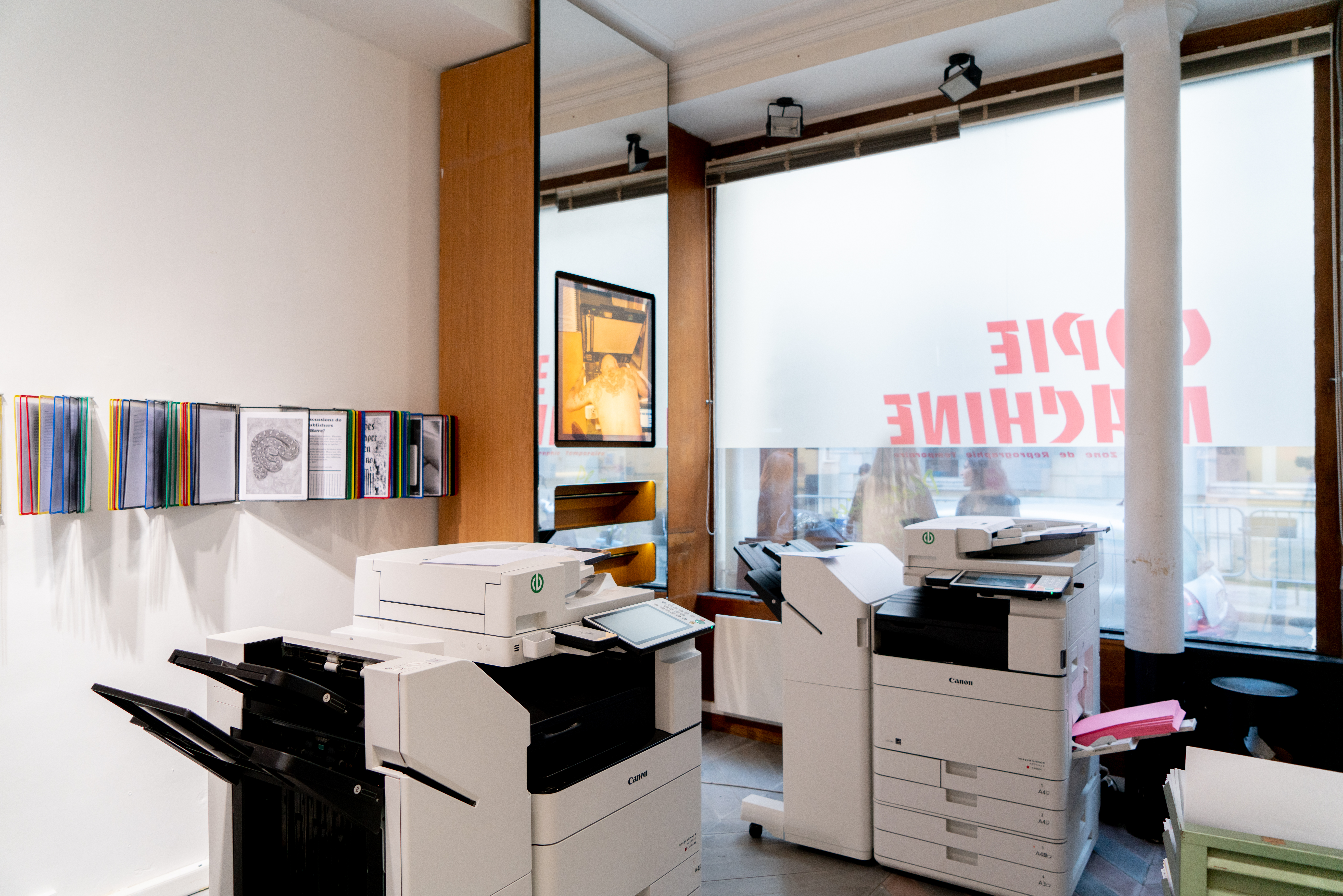 Welcoming all forms of action through photocopying, Copie Machine is a project intended to produce, question, and put into circulation documents in a multitude of forms: leaflets, posters, books, fanzines… Based on the principles of copyleft and taking the form of a corner store, Copie Machine transforms Shmorévaz into a Temporary Photocopy Zone in which everyone can come and freely take hold of a set of contributions from artists, thinkers, poets etc. to compose their own edition or photocopy their documents “from 0,00 € All tax included”.