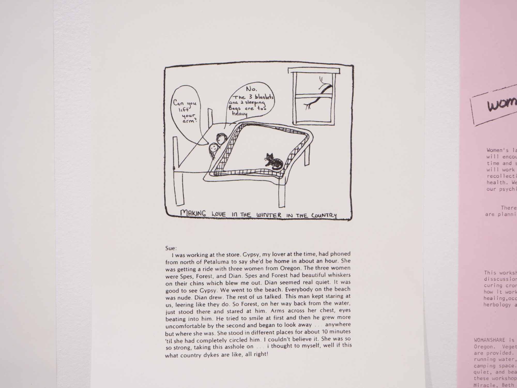 Empruntant son titre à un livre publié en 1976 et coécrit par les membres de WomanShare, Country Lesbians: an archive of the WomanShare collective rend hommage à cet épisode majeur mais encore méconnu de l’herstory, tout en mettant en lumière les usages de la photographie comme pratique féministe et collective.
