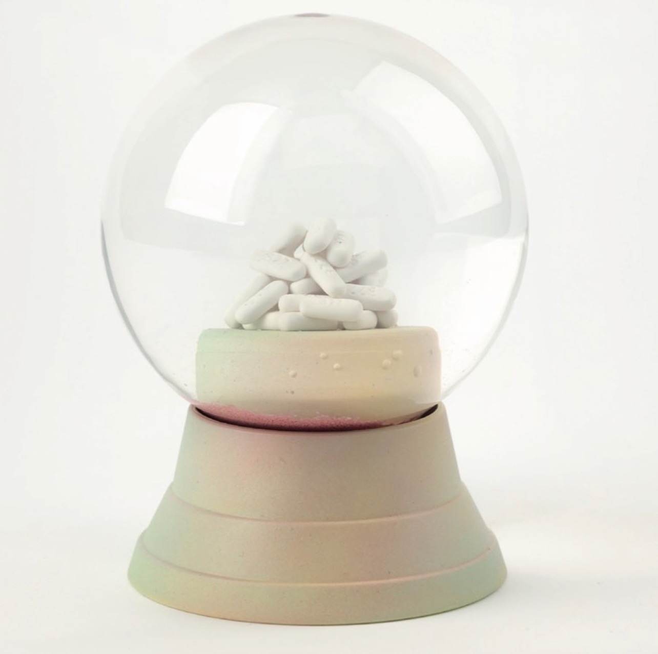 “Twelve months under the snow, twelve months wrapped in snowflakes, twelve months of gentle advice on those things that are of the utmost importance: patchwork and sewing, cuddly toys, flower boxes and gardening. Things – another word would have to be invented – that live with us and need to be cared for, as much as they care for us. With this aptly-named Grand almanach de poche, Benoît Piéron cultivates some of his obsessions, to better tame them. “With these snow globes, I encapsulate personal memories linked to the pajama people’s collective intimacy. The enchanted distancing they offer enables me to disseminate representations of death and its living embodiment, illness, that differ from the boring, validist norm focused on remission without a thought for the ecstasies of foreplay,” he explains.When made miniature, negative waves are less frightening. When materialized, anxieties and flavors are embodied for conversation. When shaken in all directions, Benoît Piéron’s motifs invent new projections. Here’s to our needles, our caresses, our seeds. Our fingers are our best allies.”